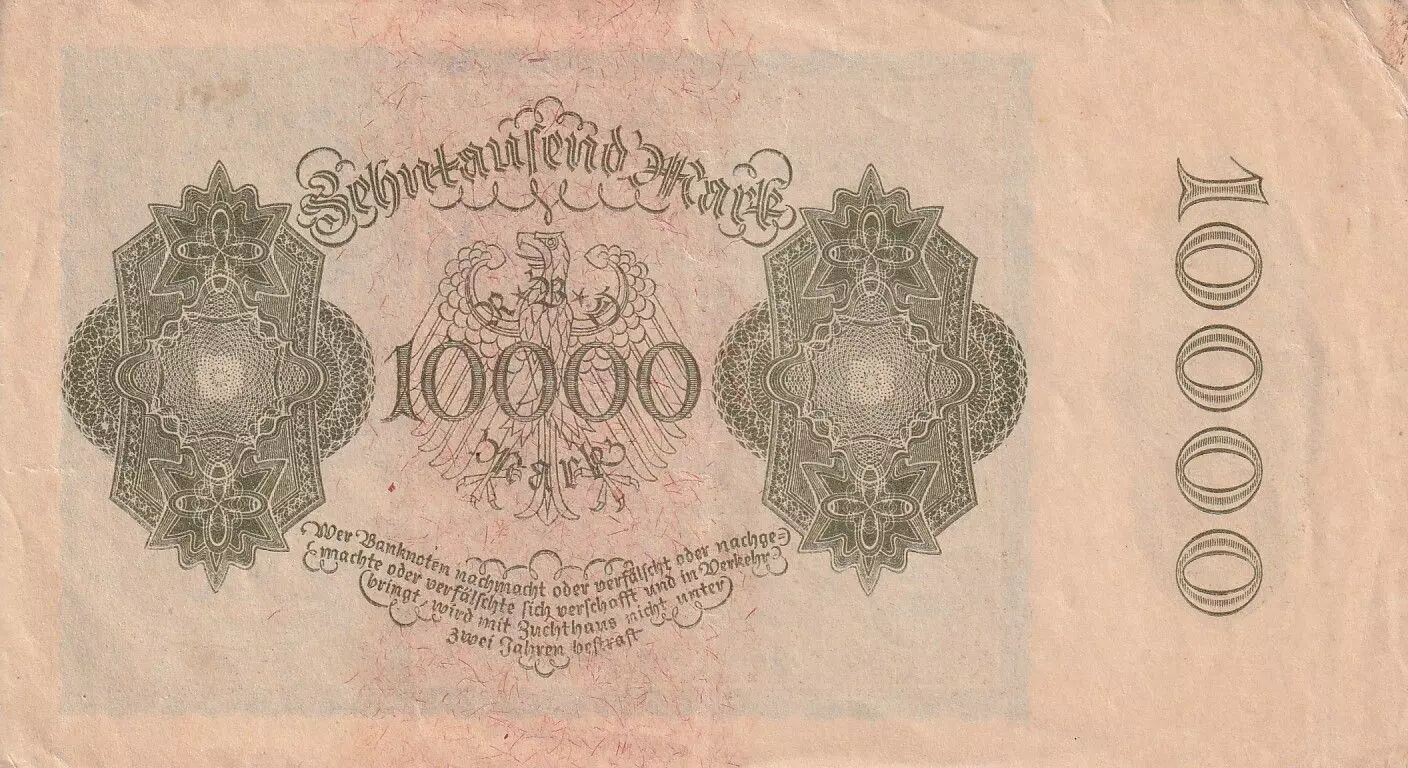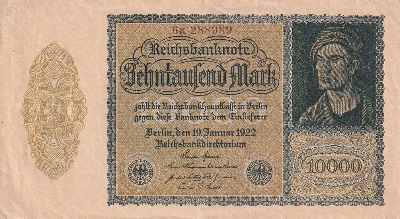 Banknote Germany 10000 mark - Portrait by Albrecht Dürer - Reichsbanknote - Serial 6k