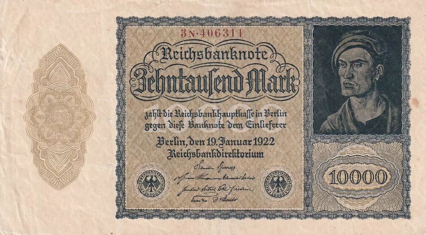 Banknote Germany 10000 mark - Portrait by Albrecht Dürer - Reichsbanknote - Serial n - 1922