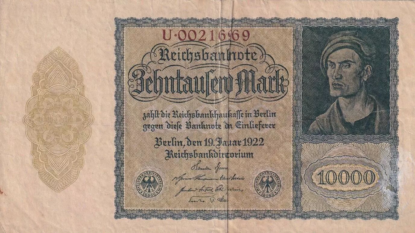 Banknote Germany 10000 mark - Portrait by Albrecht Dürer - Reichsbanknote - Serial U - 1922