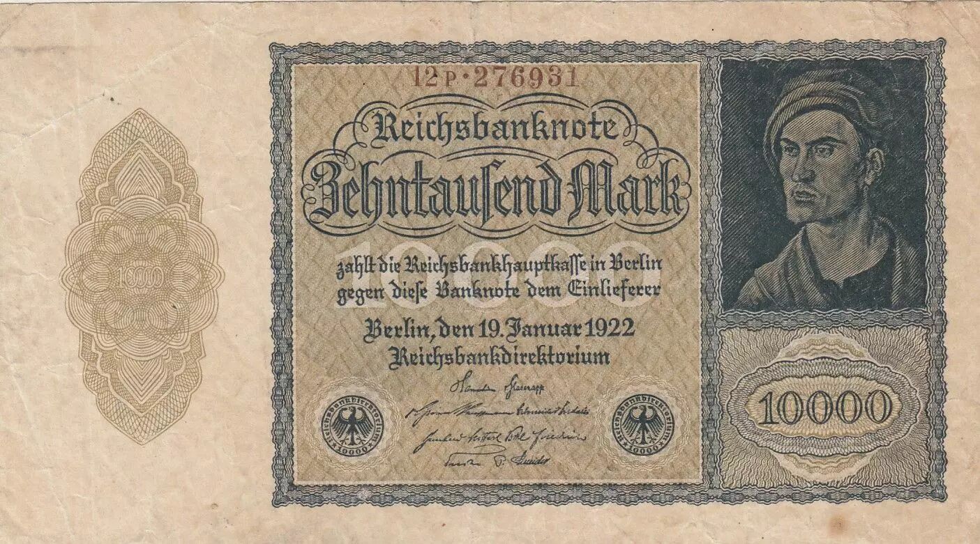 Banknote Germany 10000 Mark Portrait of man by Durer - 1922 - Serial 12P.