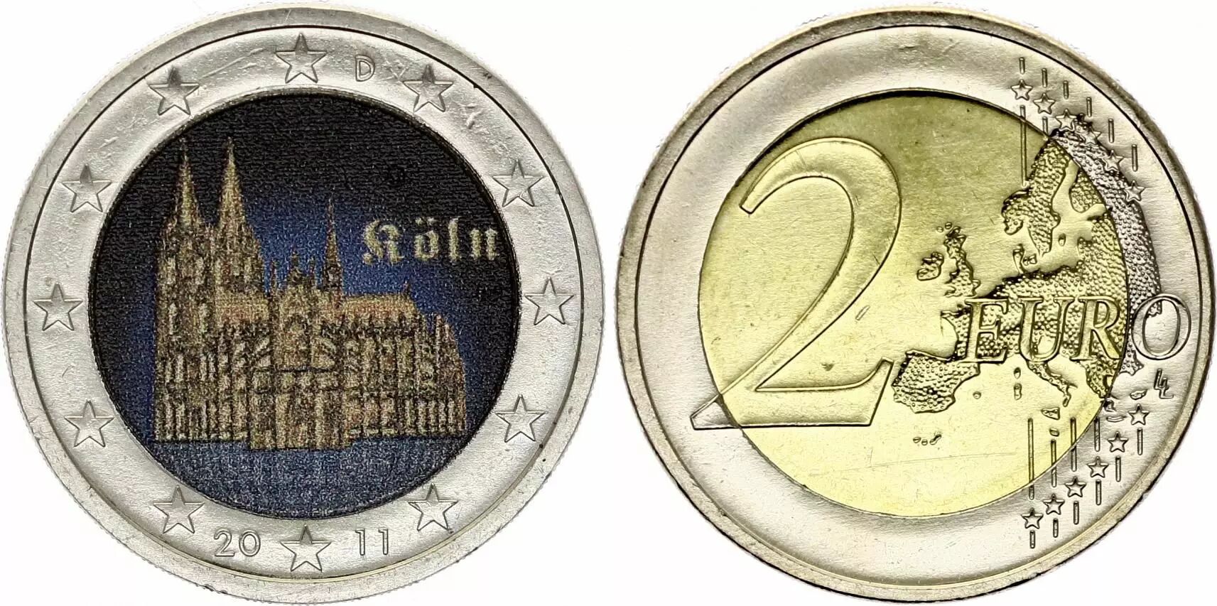 Coin Germany 2 Euros - Cologne Cathedral - Colorised - D Munchen - 2011
