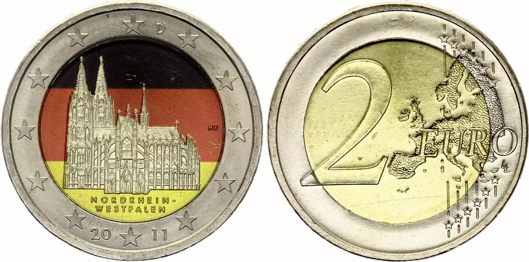 Coin Germany 2 Euros - Cologne Cathedral - Colorised - J Hamburg - 2011