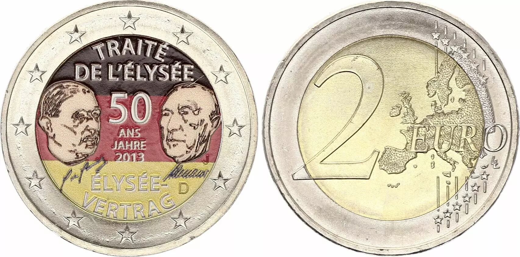 Home > World Coins > European Currencies > Germany - German States > Germany > Germany 2 Euros - Elysée Treaty - Colorised - J (Hamburg) - 2013