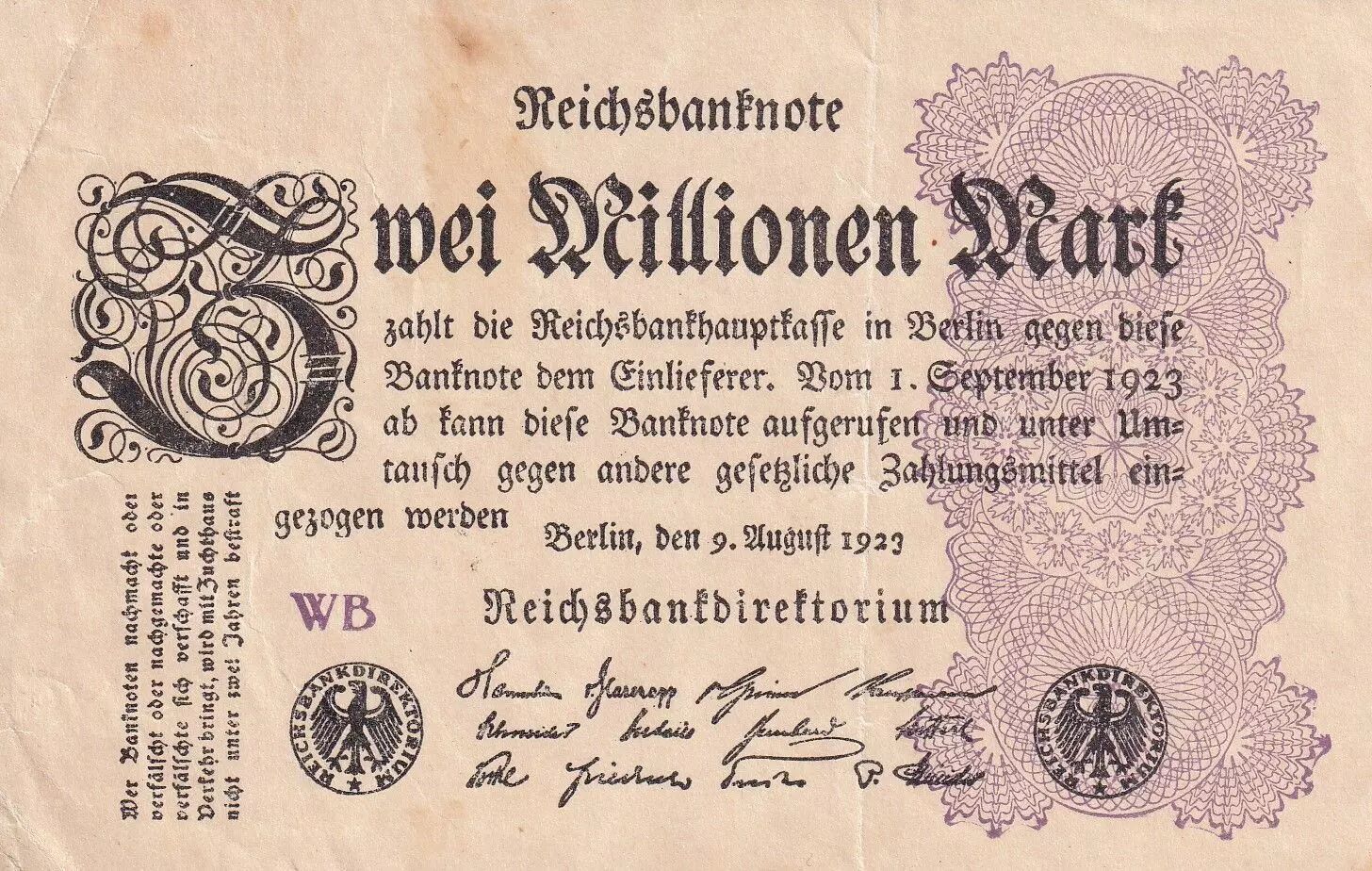 Banknote Germany 2 Millionen Mark - Black and Lilac - 09-08-1923 - Serial WB
