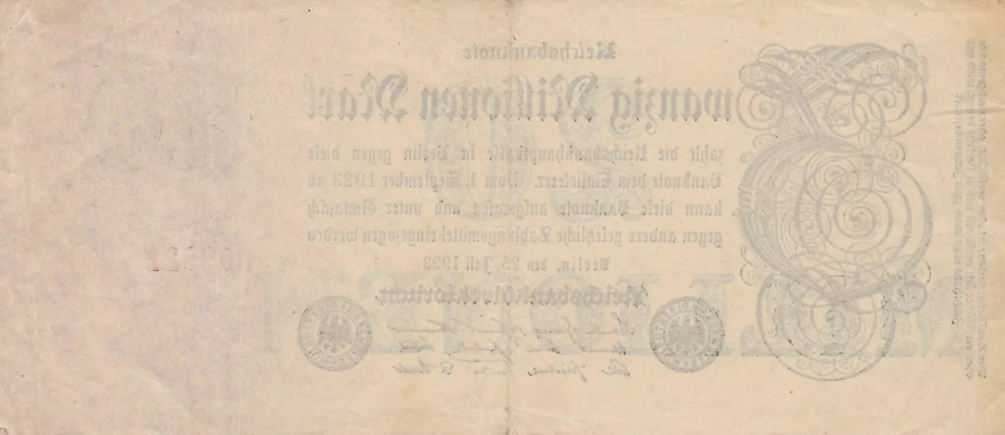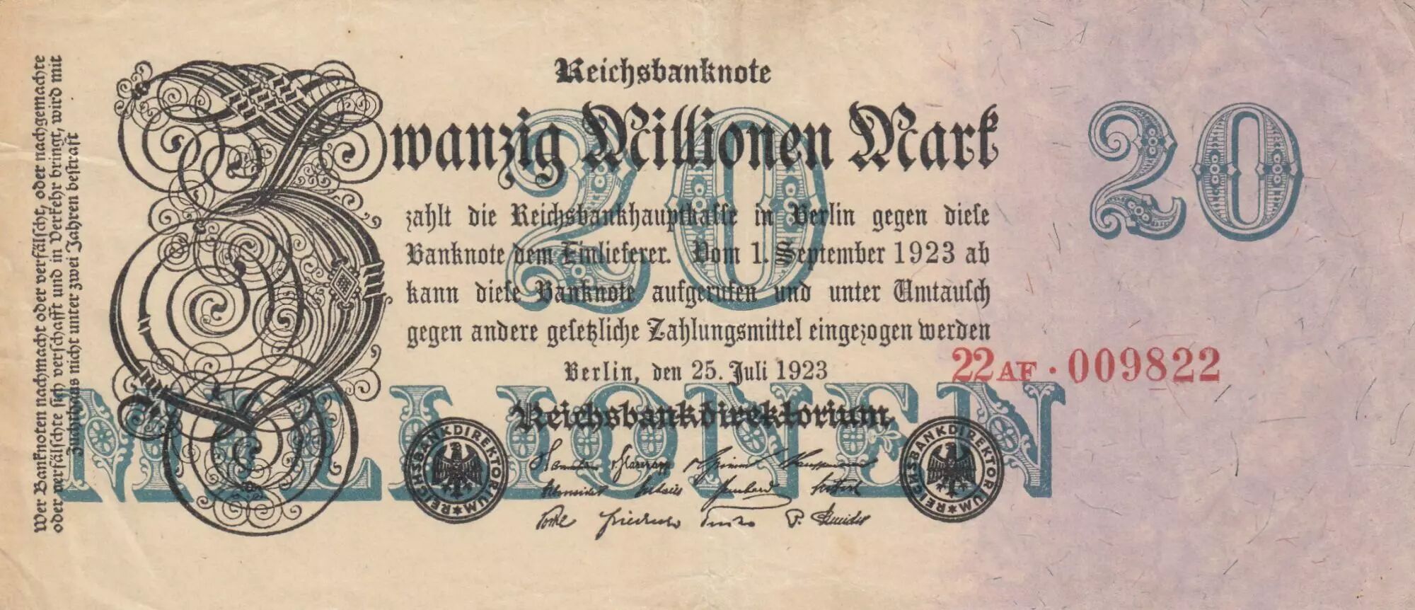 Banknote Germany 20 millionen mark - Reichsbanknote - Serial 22AF - 1923