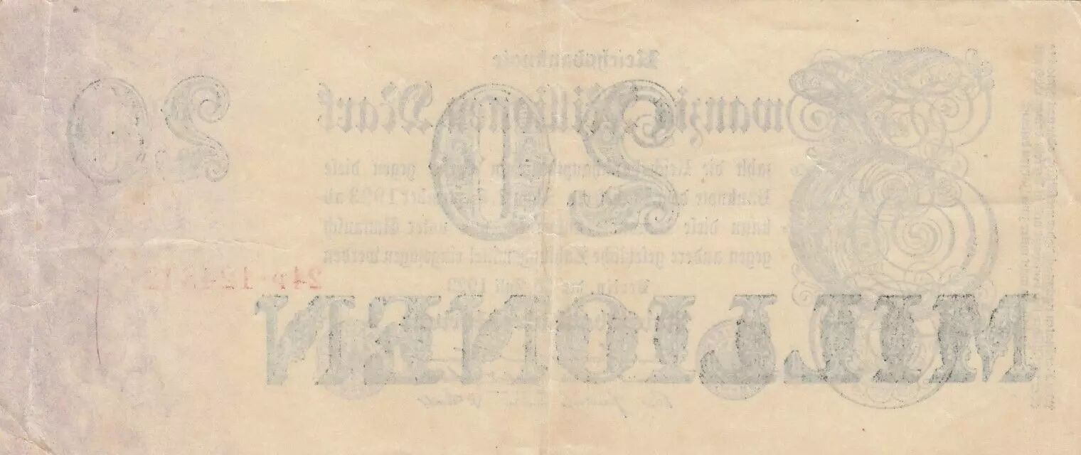 Banknote Germany 20 Millionen mark - Reichsbanknote - Serial 24p 8 digit - 1923