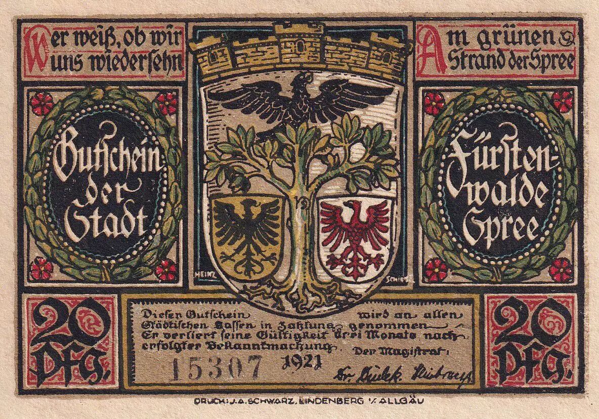 Banknote Germany 20 Pfennig - Fürstenwalde - Notgeld - 1921