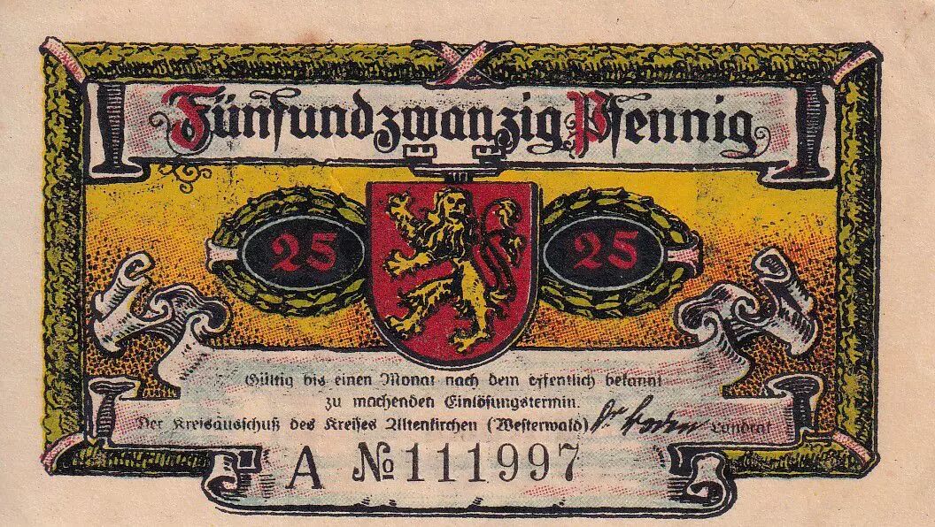 Banknote Germany 25 Pfennig - Altenkirchen - Notgeld - 1921