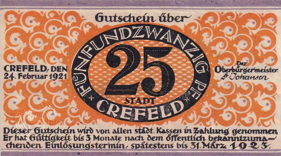 Banknote Germany 25 Pfennig - Crefeld - Notgeld - 1921