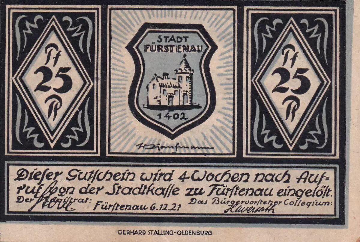 Banknote Germany 25 Pfennig - Furstenau - Notgeld - 1921