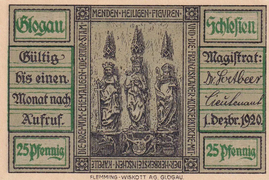 Banknote Germany 25 Pfennig - Glogau - Notgeld - 1920