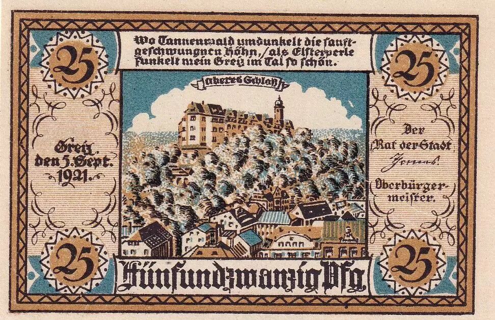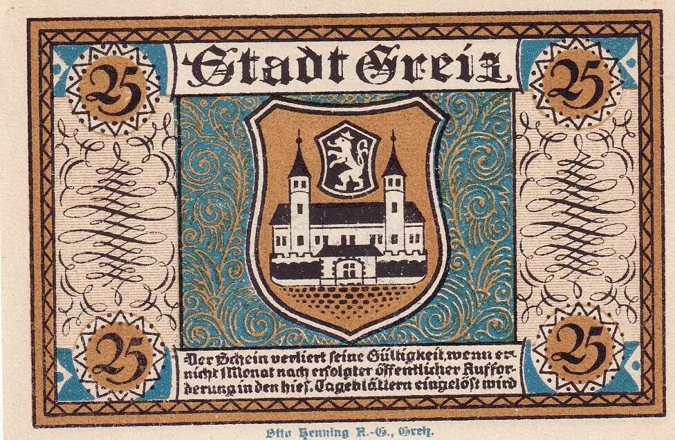 Banknote Germany 25 Pfennig - Greiz - Notgeld - 1921