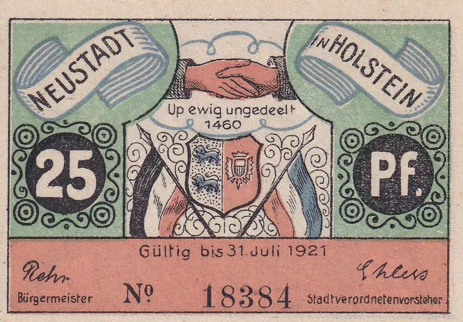 Banknote Germany 25 Pfennig - Neustadt i. Holstein - Notgeld - 1921