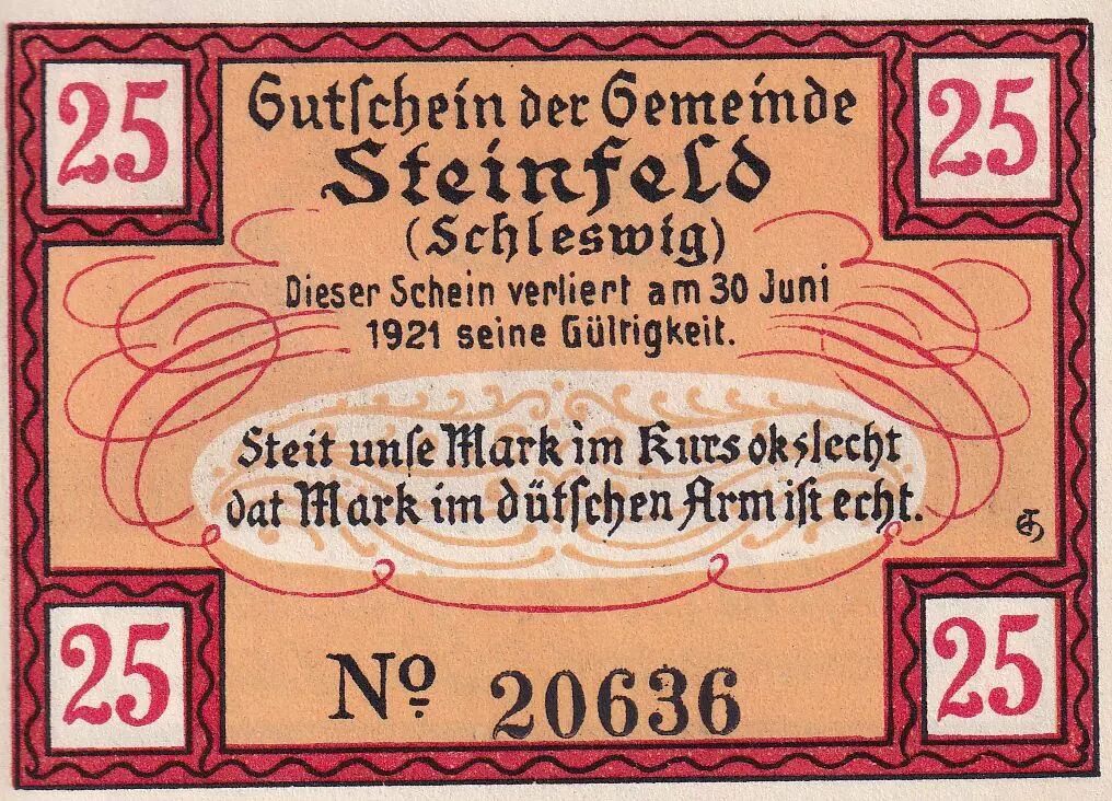 Banknote Germany 25 Pfennig - Steinfeld - Notgeld - 1921