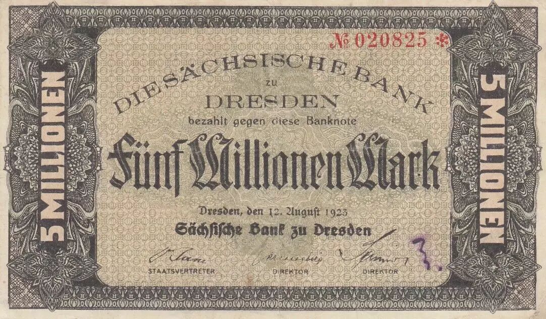 Banknote Germany 5 000 000 mark - City of Dresden - Number 20825 - 1923