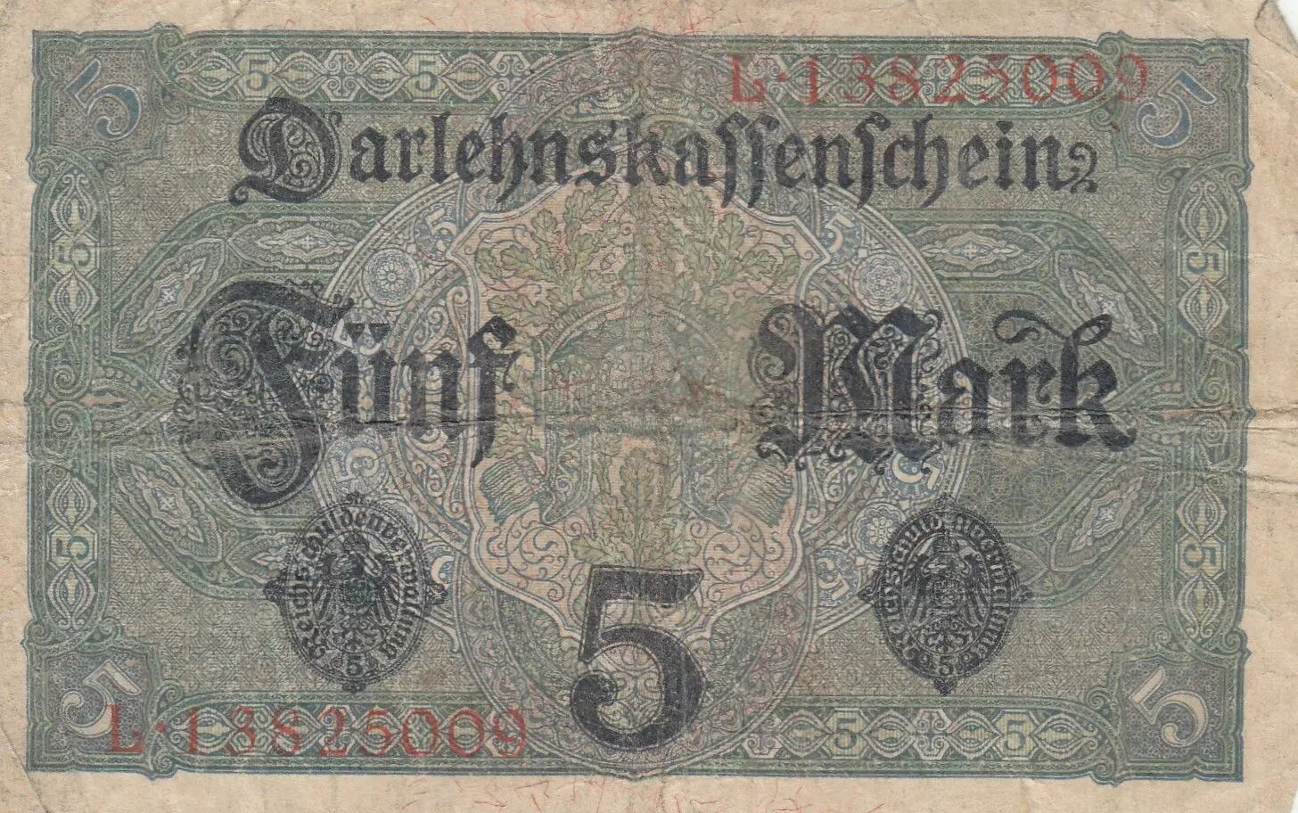 Banknote Germany 5 Mark - Woman, crown - 1917 - Serial L - P.56b
