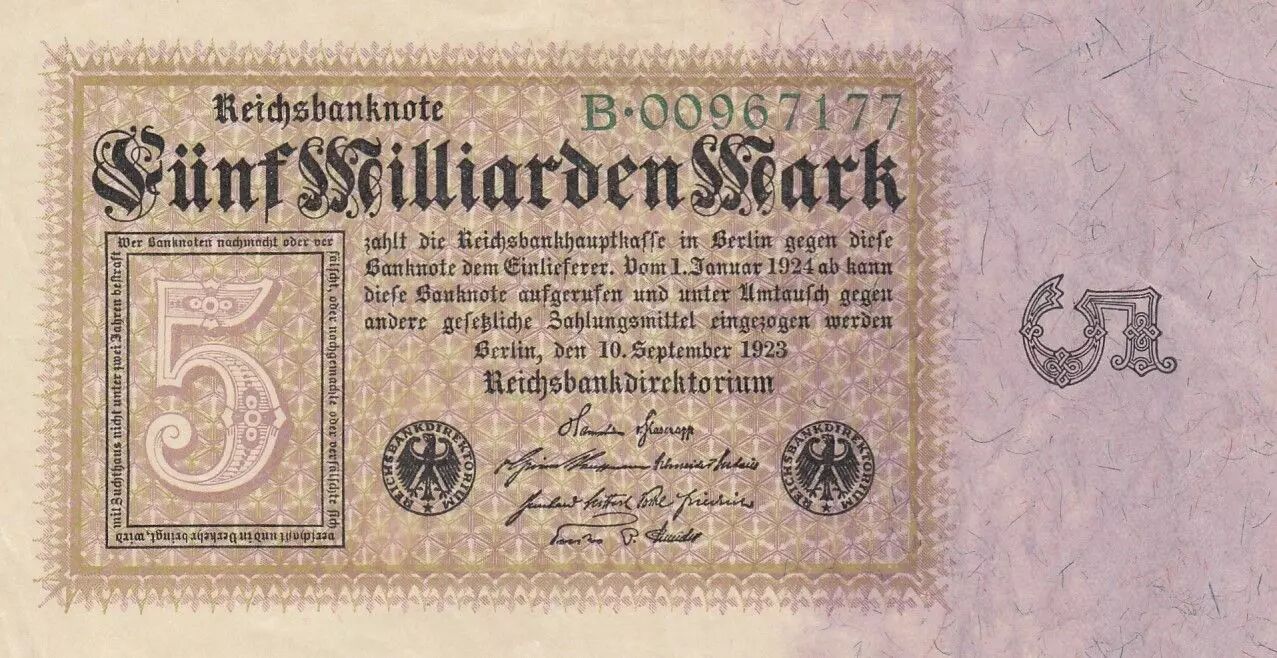 Banknote Germany 5 milliarden Mark - Reichsbanknote - Serial B - 1923