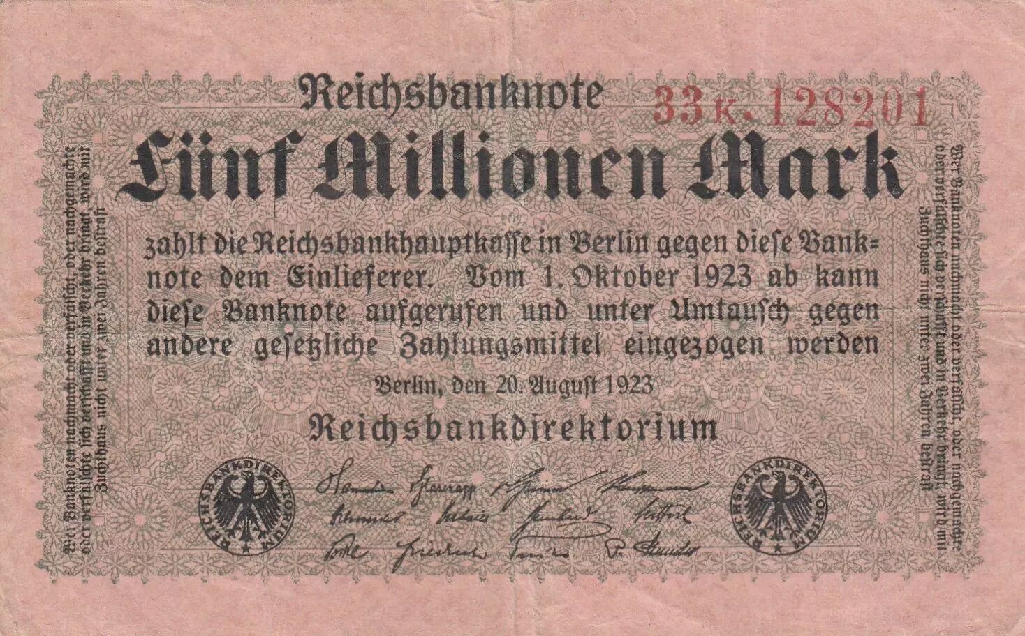 Banknote Germany 5 millionen mark - Reichsbanknote - Serial 33k - 1923