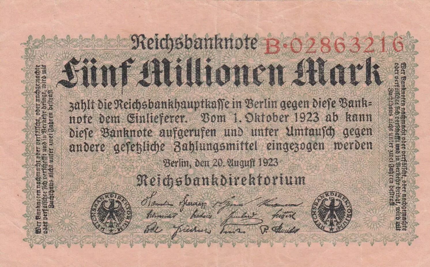 Banknote Germany 5 millionen mark - Reichsbanknote - Serial B.02 - 1923