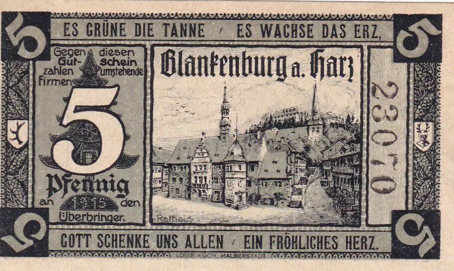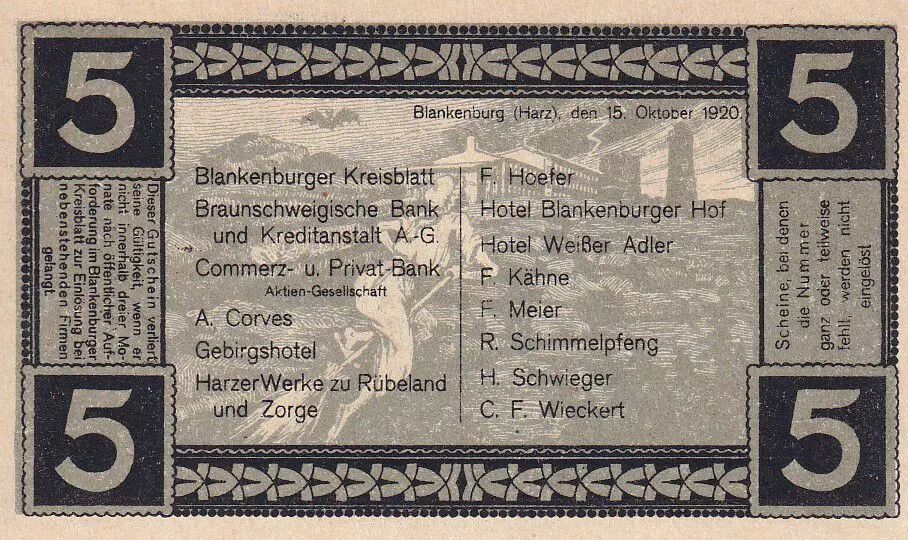 Banknote Germany 5 Pfennig - Blankenburg am Harz - Notgeld - 1920