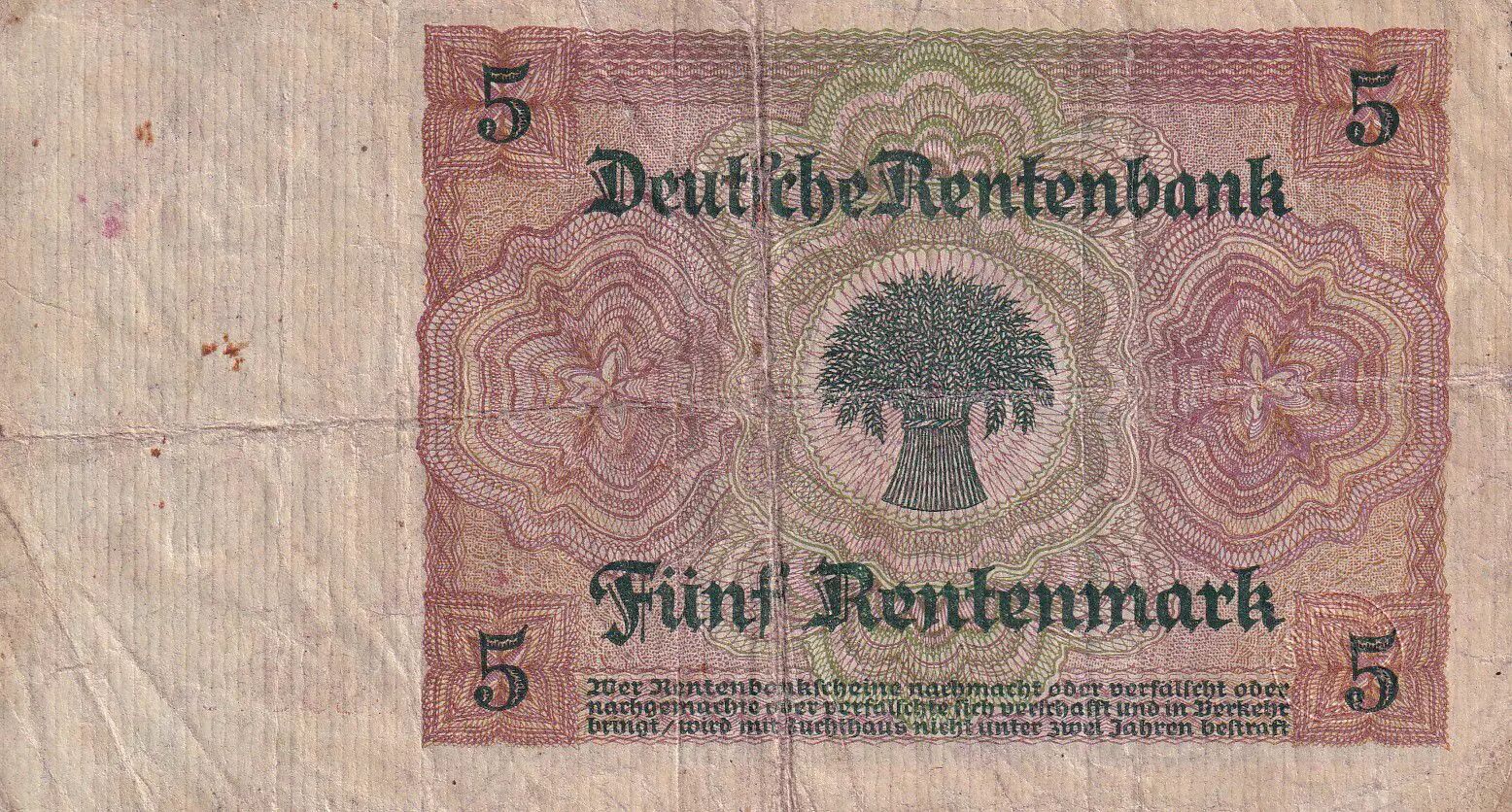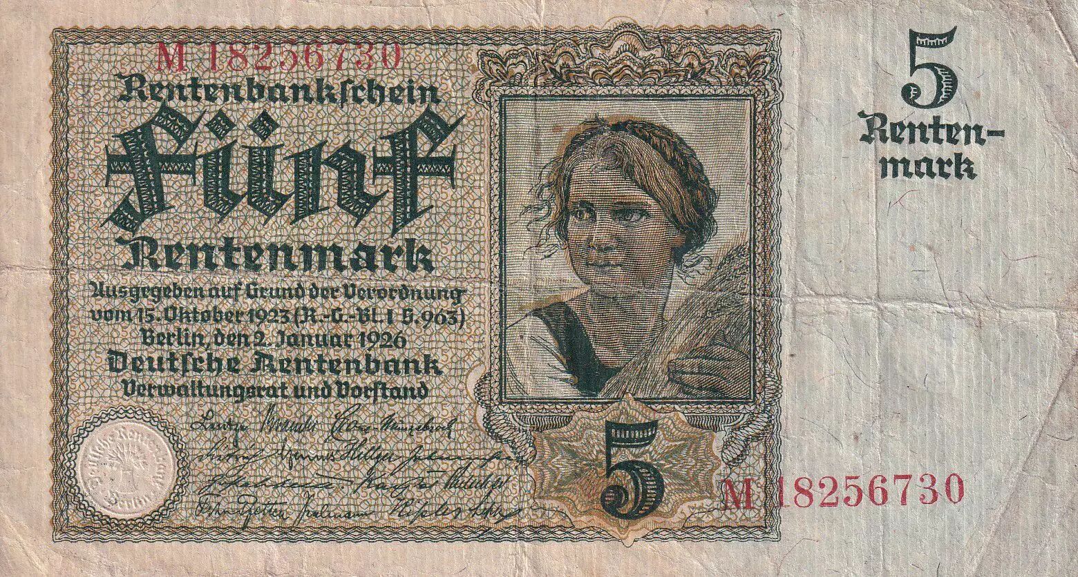 Banknote Germany 5 Rentenmark - Young girl - 02-01-1926 - Serial M - P.169