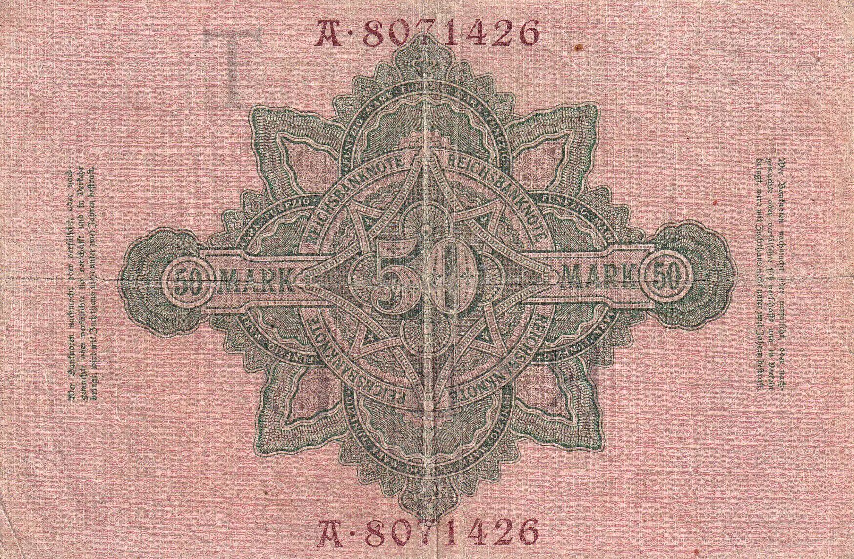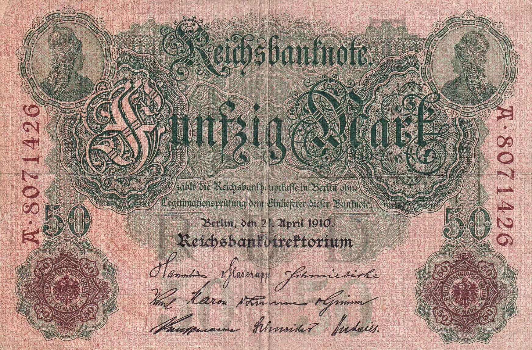 Banknote Germany 50 Mark - Green & Rose - 1914 - Letter A - P.41