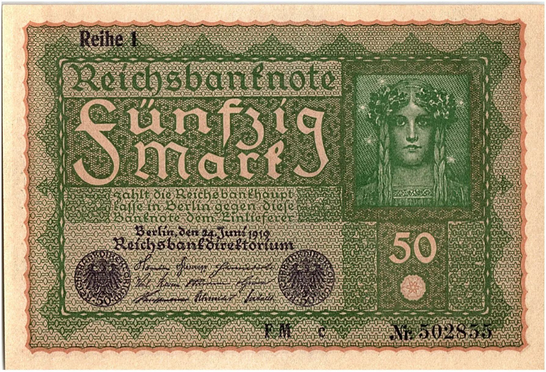 Banknote Germany 50 Mark Head of woman - 1919 - Reihe 1 serial FM c - aUNC - P.66