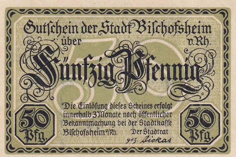 Banknote Germany 50 Pfennig - Bischolsheim v. Rhön - Notgeld - 1921