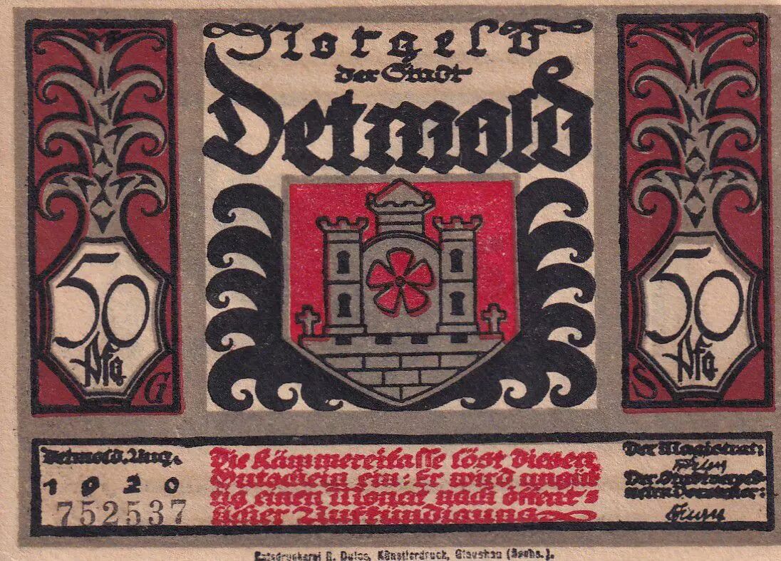 Banknote Germany 50 Pfennig - Detmold - Notgeld - 1920