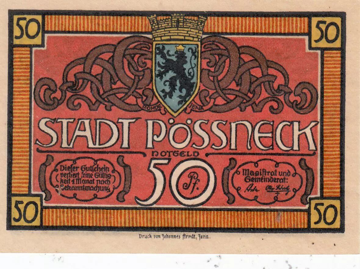 Banknote Germany 50 Pfennig - Possneck - Notgeld - ND - AU