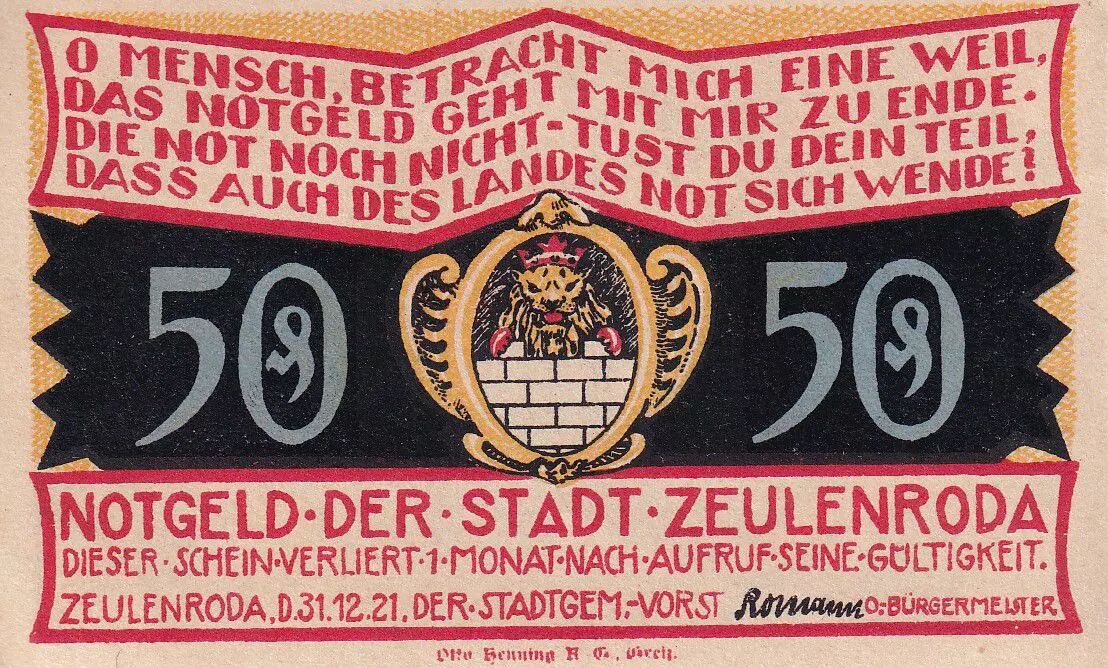 Banknote Germany 50 Pfennig - Zeulenroda - Notgeld - 1921