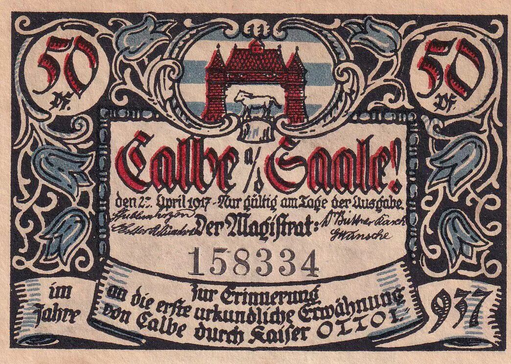 Banknote Germany 50 Pfenning - Calbe an der saale - Notgeld - 1917