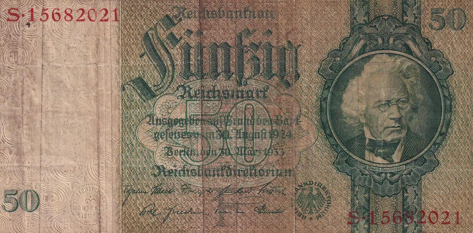 Banknote Germany 50 Reichsmark - David Hansemann - 1933 - Serial S