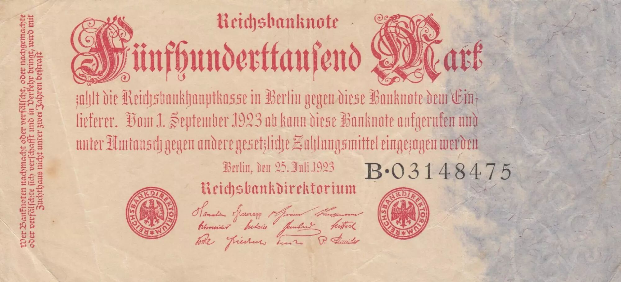 Banknote Germany 500 000 mark - Reichsbanknote - Serial B.03 - 1923