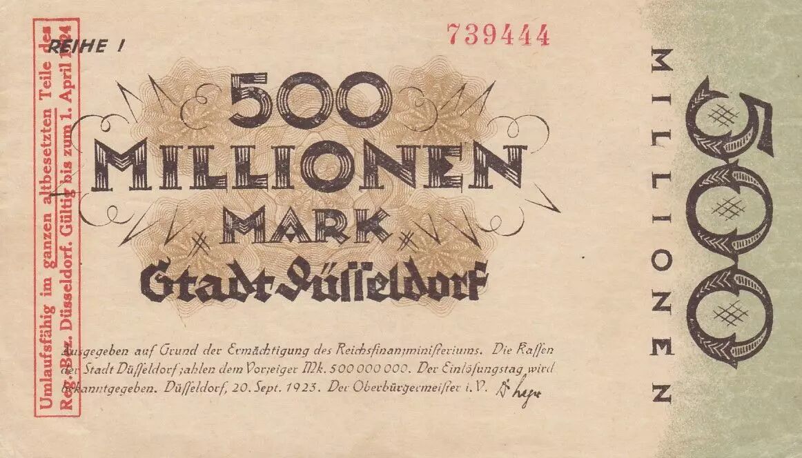 Banknote Germany 500 millionen Mark - City of Dusseldorf - Reihe I - 1923