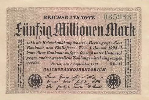 Banknote Germany 500 millionen Mark - Reichsbanknote - Serial GE-45 - 1923
