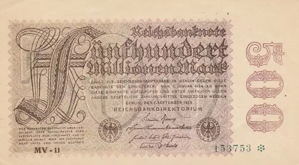 Banknote Germany 500 millionen Mark - Reichsbanknote - Serial MV-11 - 1923