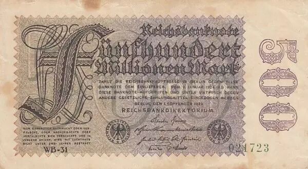 Banknote Germany 500 millionen Mark - Reichsbanknote - Serial WB-31 - 1923