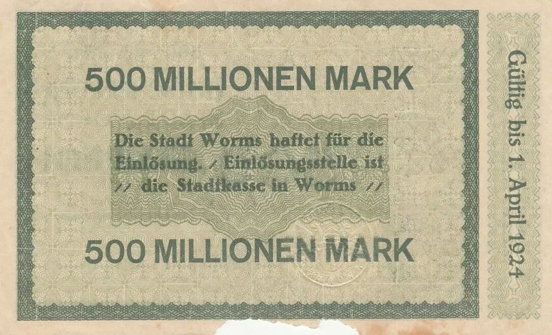 Banknote Germany 500 Millionen Mark - State of Worms - 16-10-1923 - Number 50373