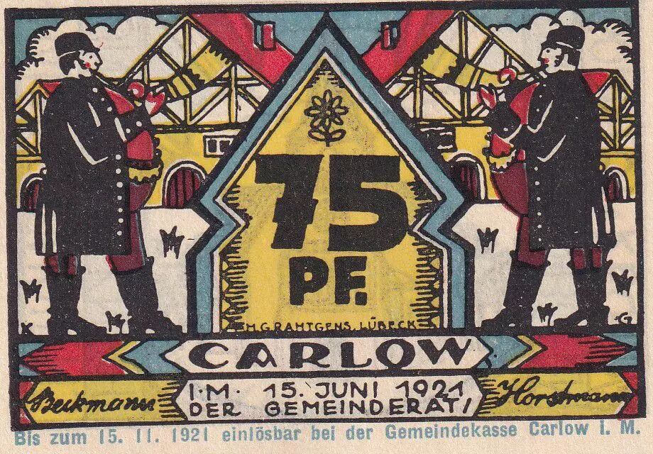 Banknote Germany 75 Pfennig - Carlow - Notgeld - 1921