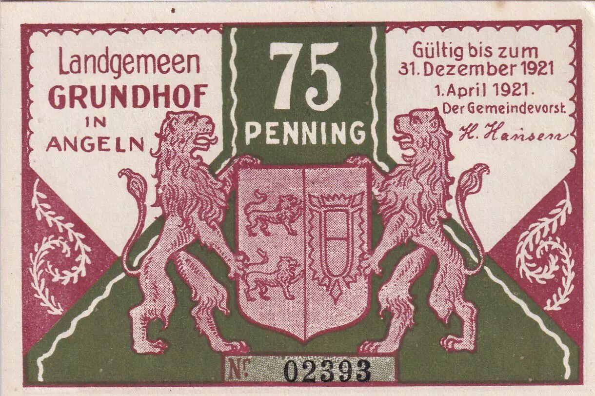 Banknote Germany 75 Pfennig - Grundhuf in Angeln - Notgeld - 1921