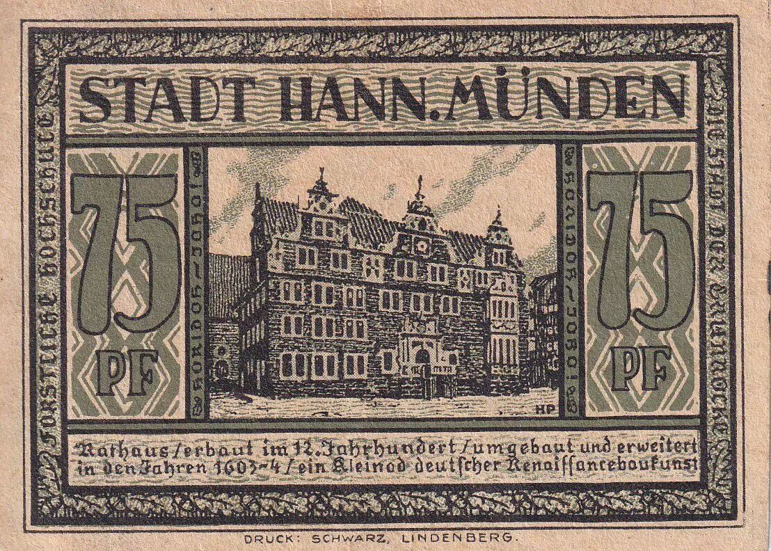 Banknote Germany 75 Pfennig - Hann. Münden - Notgeld - 1922