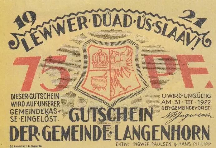 Banknote Germany 75 Pfenning - Lewwer - Langenhorn - 1922