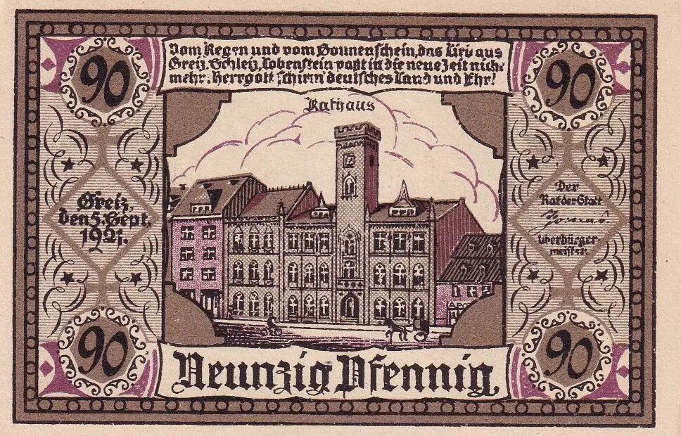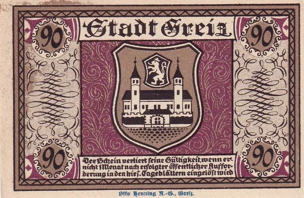 Banknote Germany 90 Pfennig - Greiz - Notgeld - 1921