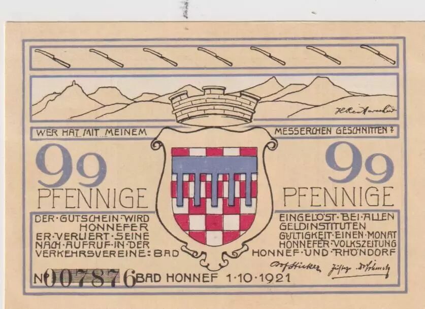 Banknote Germany 99 Pfennig - Bad Honnef - Notgeld - 1921
