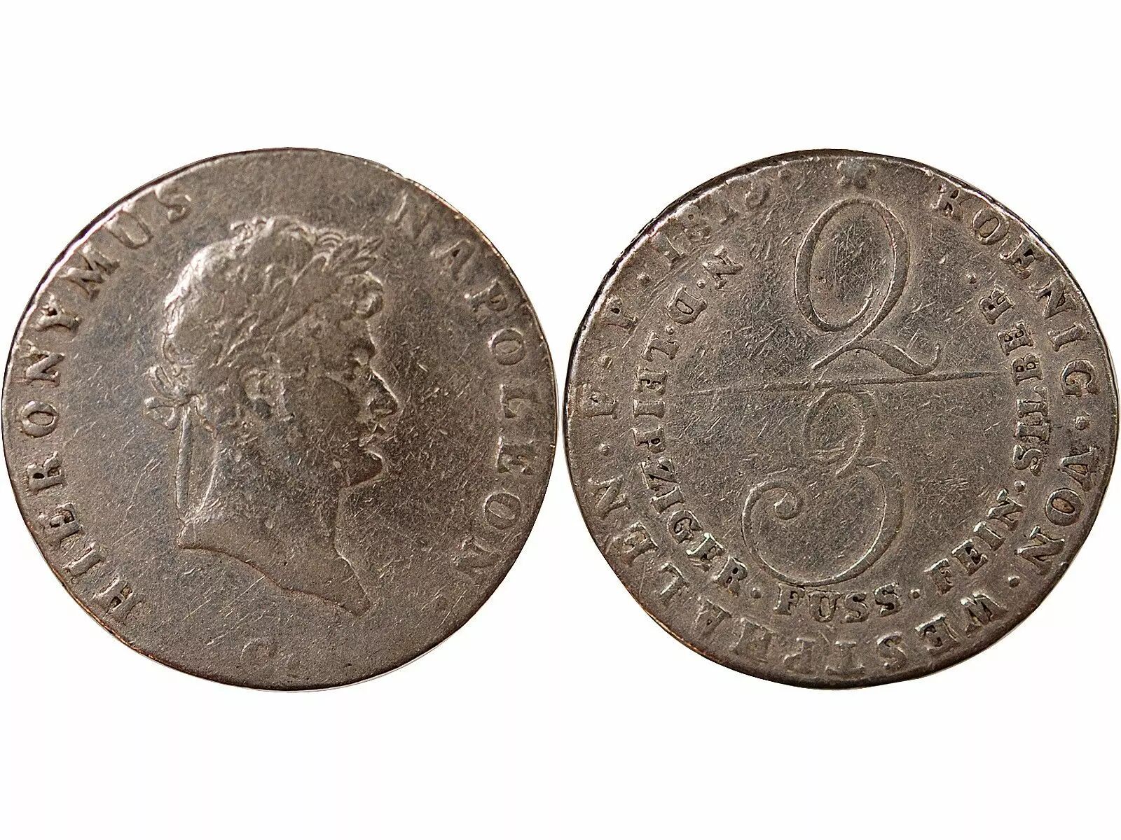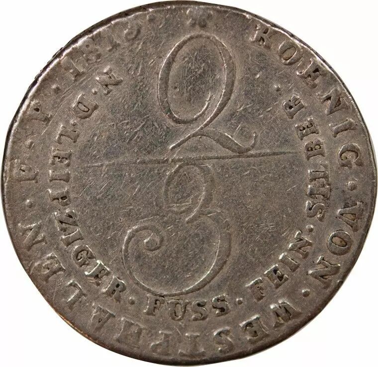 Home > > Germany Allemagne, Royaume De Westphalie, Jérôme Bonaparte - 2/3 Thaler Argent - 1813 C Clausthal