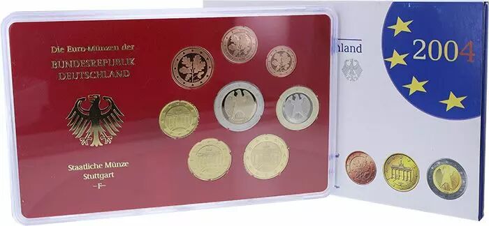Each set contains 8 coins: 1 cent to 2 euros in the 2004 mintage.