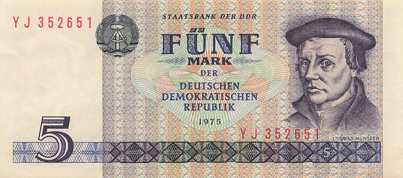 Banknote Germany (DDR) 5 Mark - Thomas Müntzer - 1975 - P.27