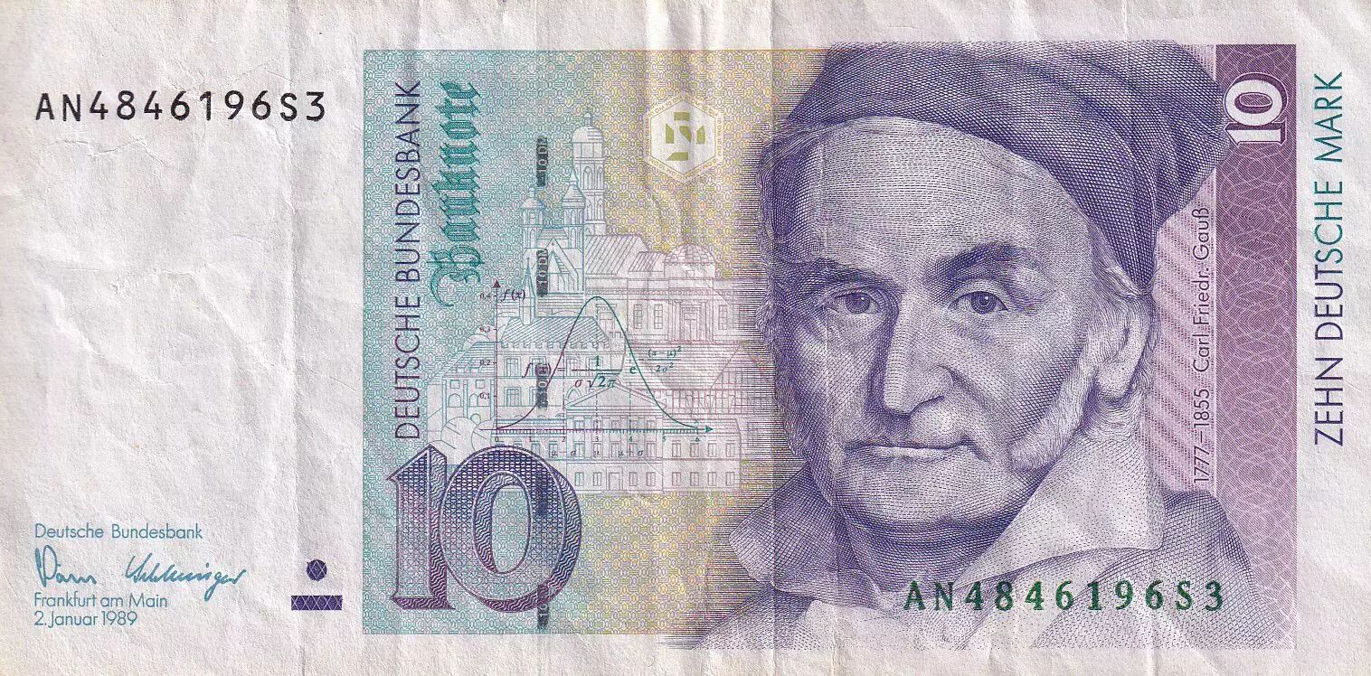 Home > > Germany (Federal Rep.) 10 D Mark - Carl Friedr Gauss - 1989 - P.38a