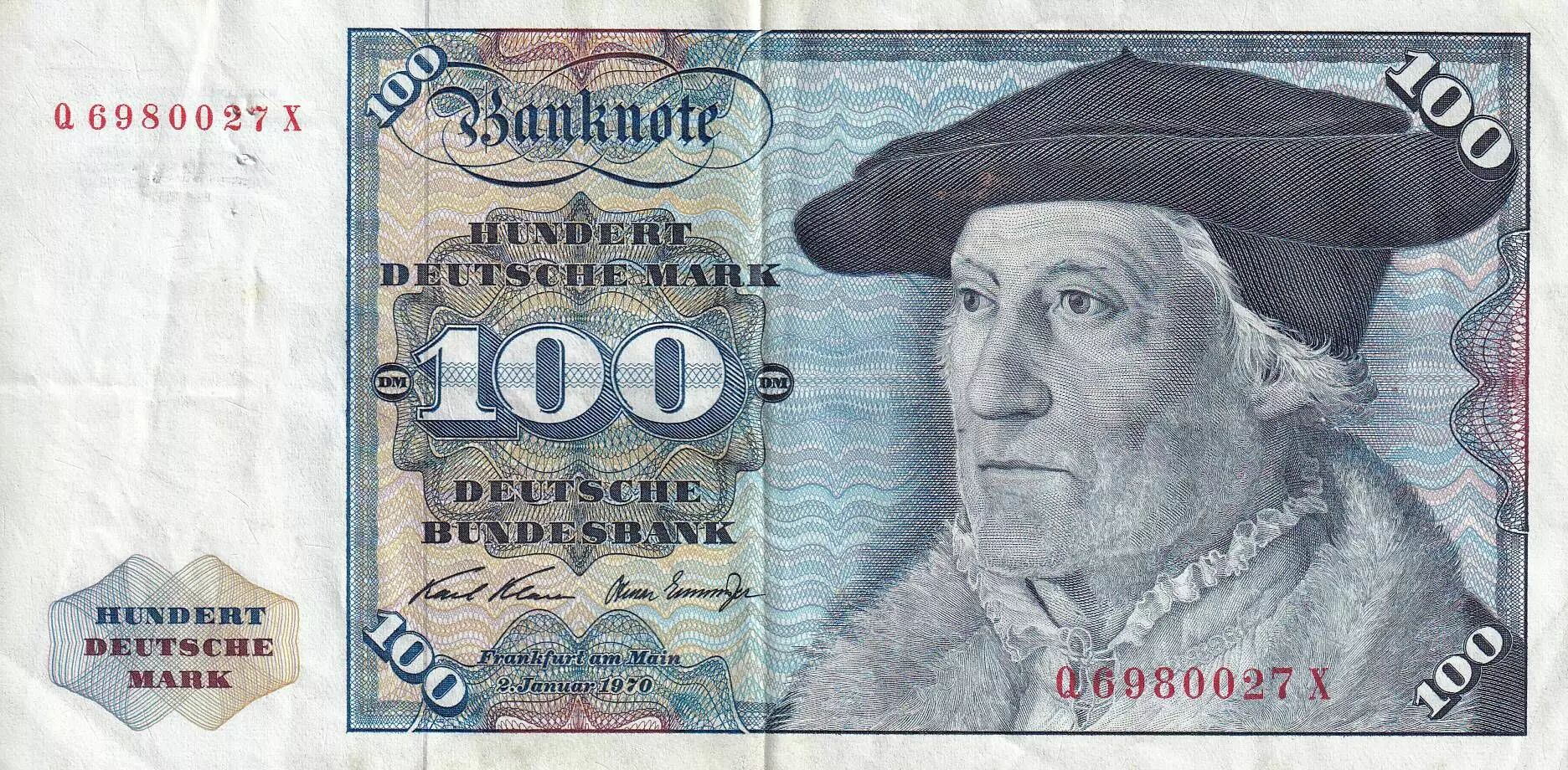 Home > > Germany (Federal Rep.) 100 Deutsche Mark - Sebastian Munster - Eagle - 1970 - Lettre Q - VF - P.34a
